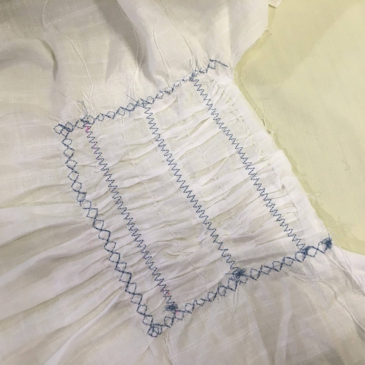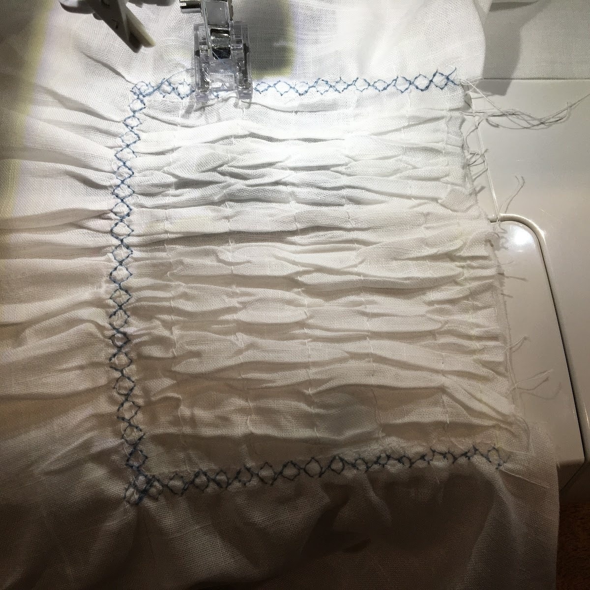 ピンタックとジグザグフリルをマスターした感があるので、次はシャーリングを作りたくなった。