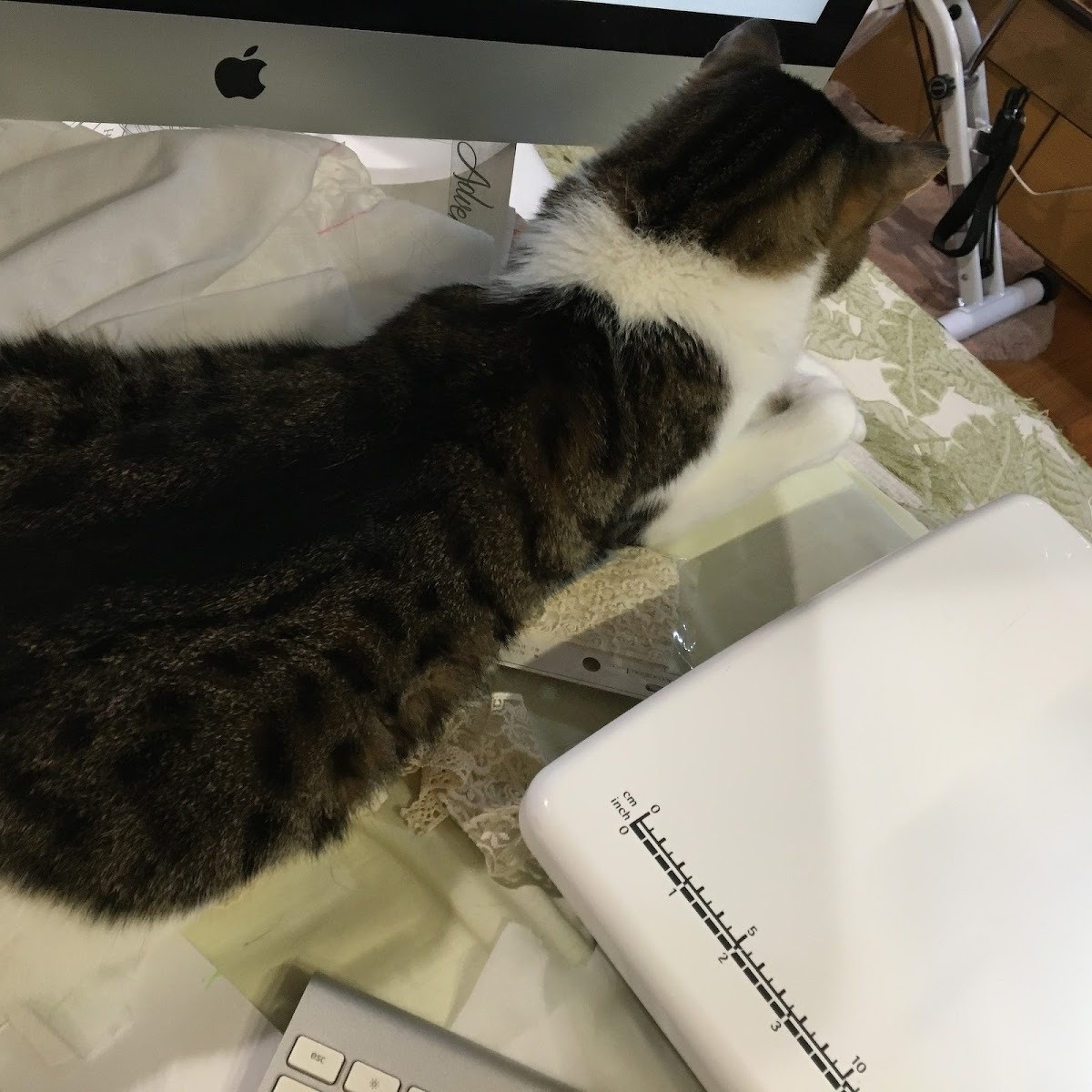 まず失敗してる記事なんですけどもね。猫が手伝うから続きの作業ができなくて、ブログ更新してるわけよ。次に縫いたいパーツの上で寝てるんだもん。