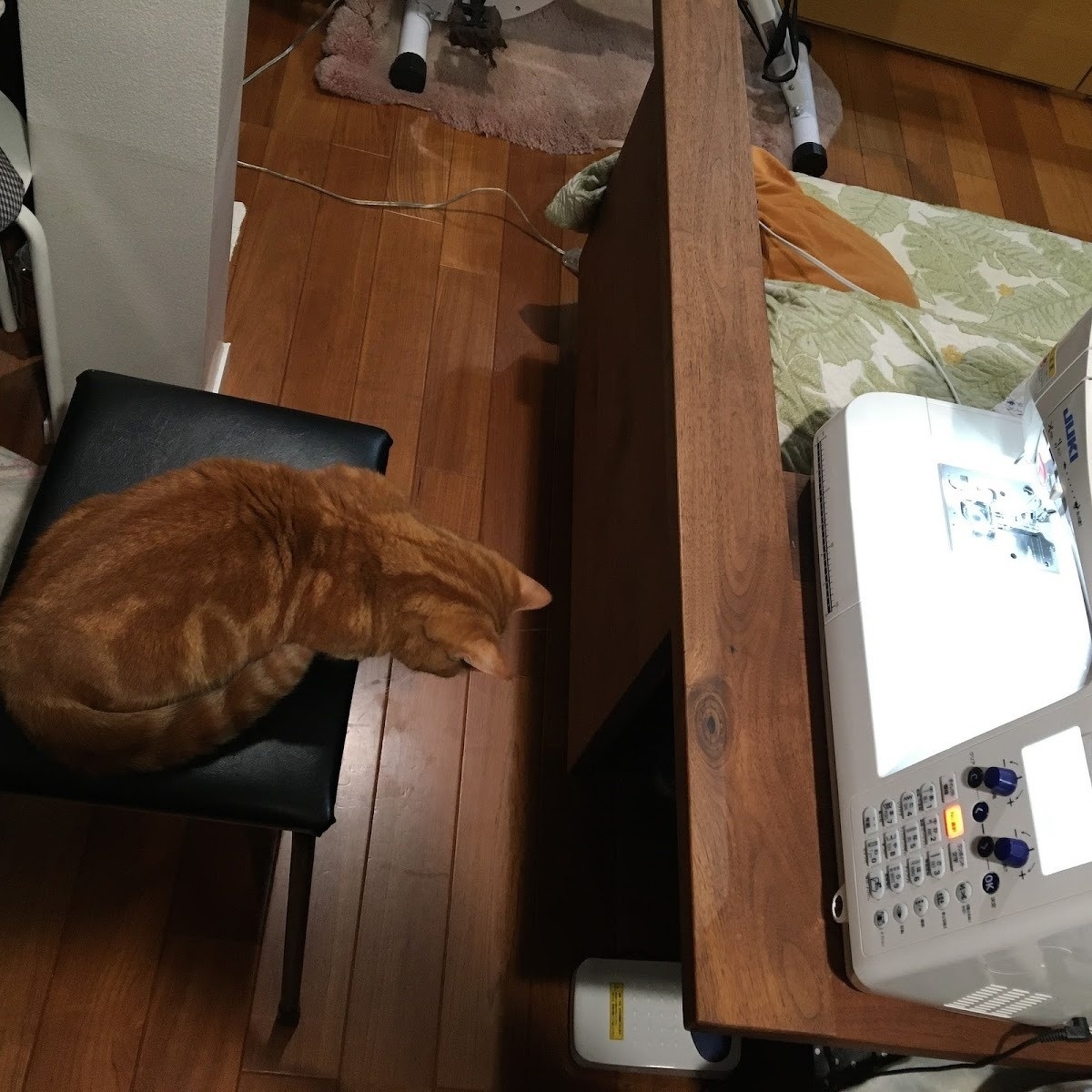 次に縫うパーツも押さえられてるし、家庭用ミシン席も押さえられてた。何も作業ができないわ。。
