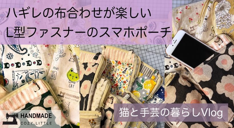 ハギレの布合わせが楽しいL型ファスナーのスマホポーチ