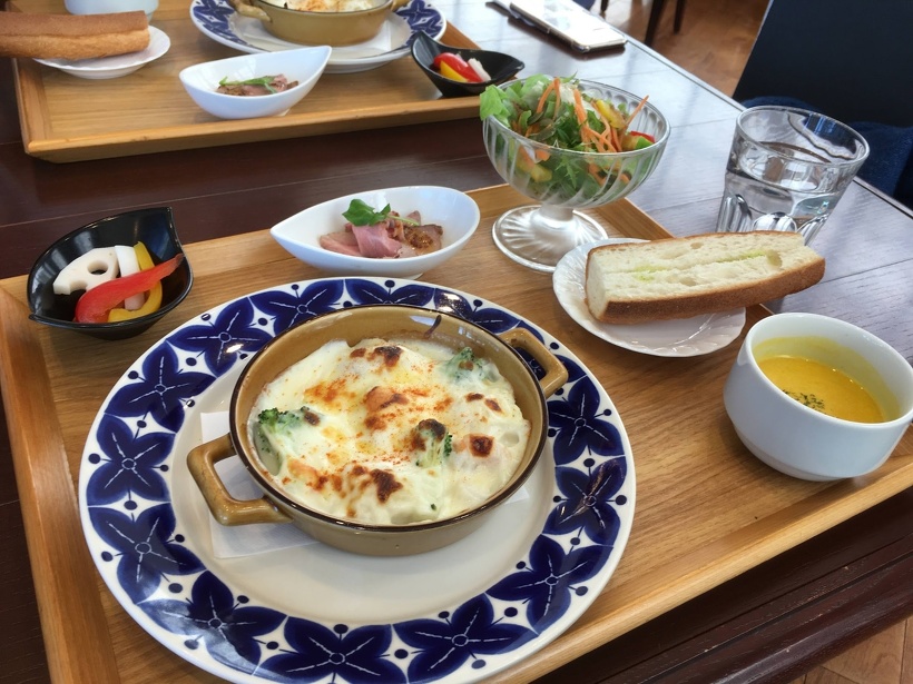 ちょっと離れたフレンチのお店に行ってきたときの写真です。月替わりのランチ。この壁のタイルは、うちも採用している名古屋モザイクのニューヨーカーグラスではなかろうか?とか思って見てきました。うちは正方形タイプを使ってます。ガラスタイルですごく綺麗なんだわ。