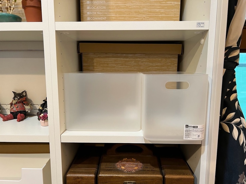 悩んでた棚の収納、結局低コストで数が揃いそうな、ダイソーの積み重ね収納ボックスにした。まず深型を2つ買ったけど、深型とスクエアを並べると棚の余り部分がピッタリ使える。床に近いケースには蓋付きもいくつか欲しい。お得な商品なので、原油の値上がりで実店舗在庫だけかも。明日ダイソー巡りして買い占めて来よ。