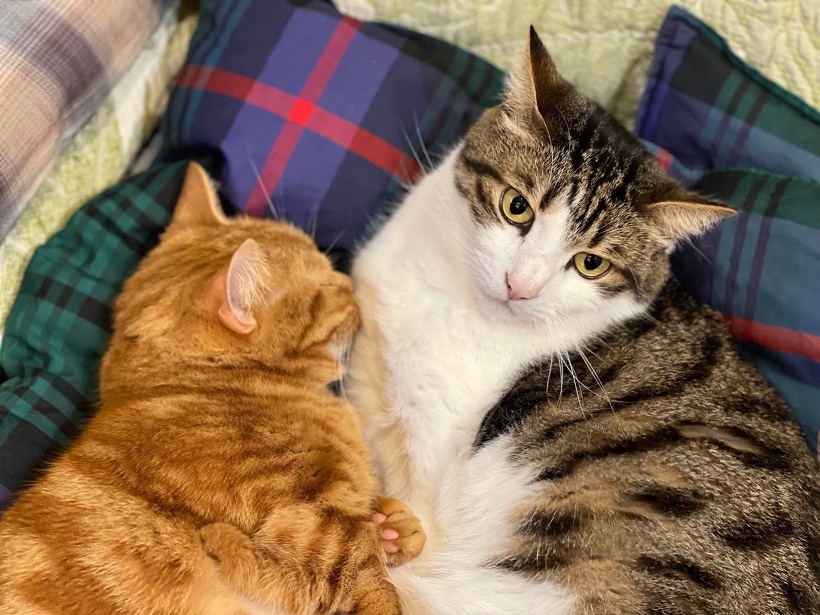 猫たち、仲良く寝てたので、こっそり写真を撮ろうとしたら気づかれた。